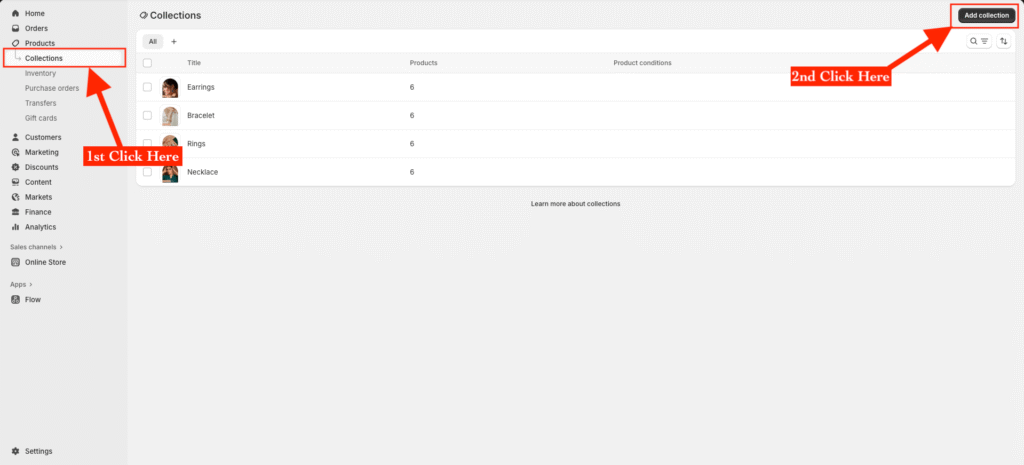 - From your Shopify dashboard, go to Products β Collections.