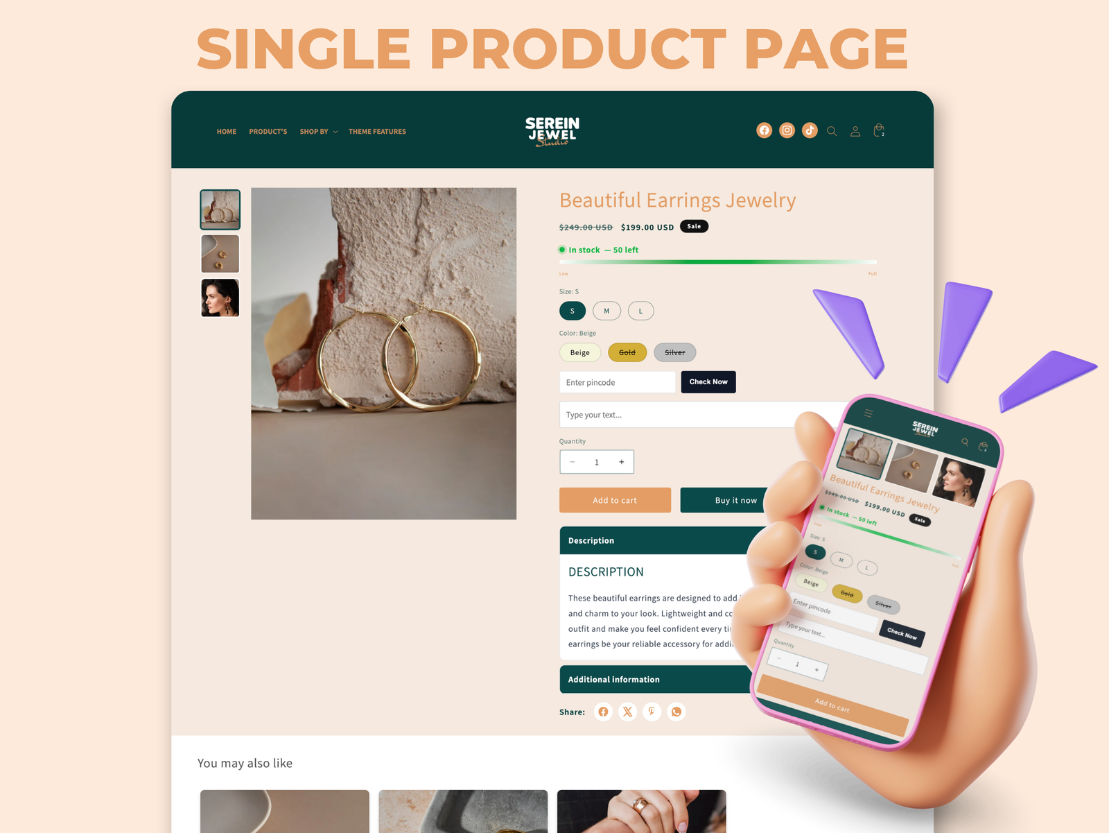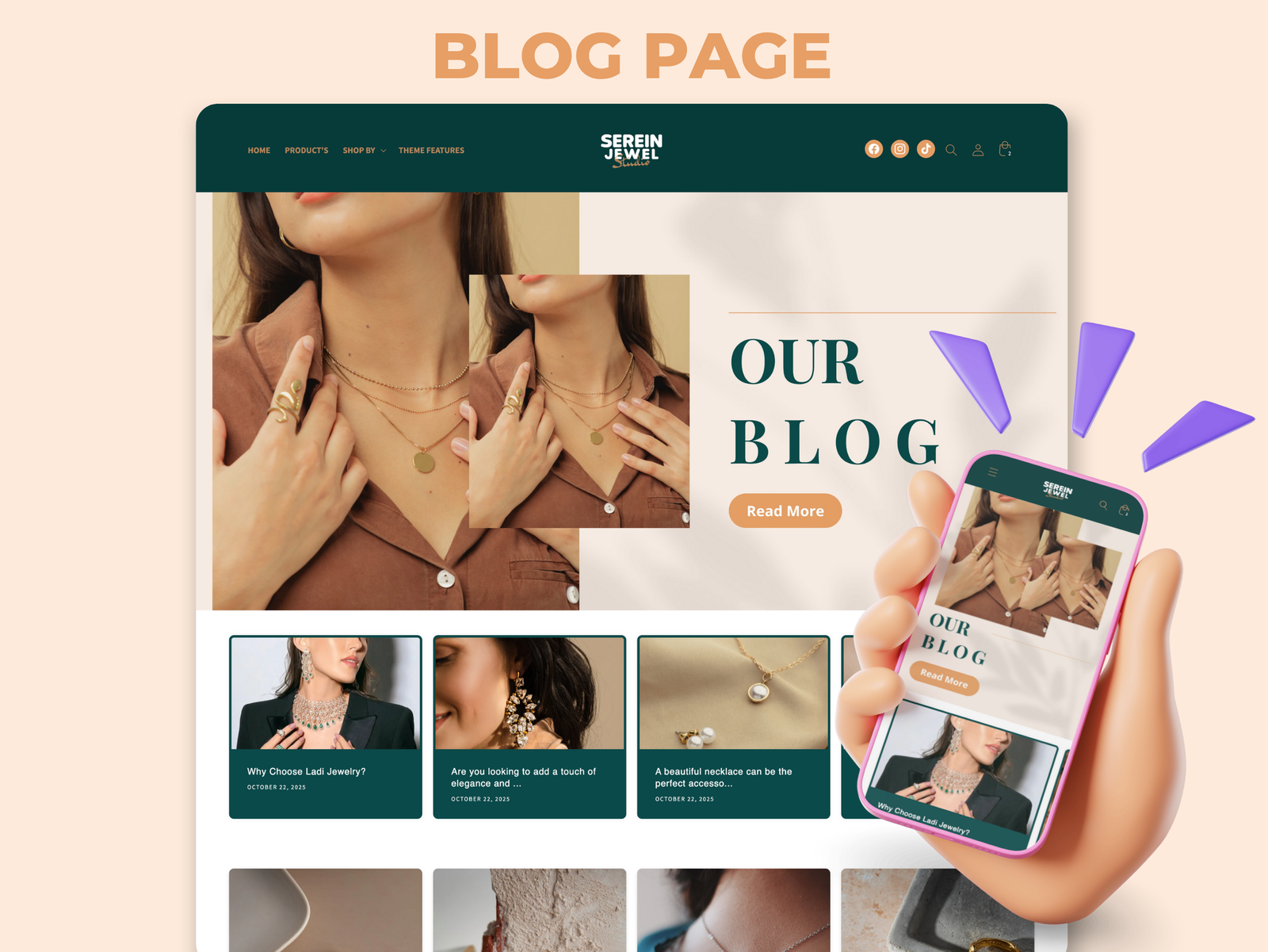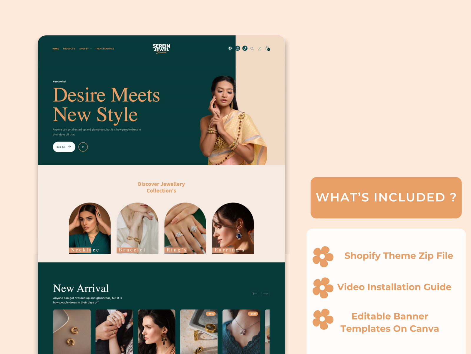 Launch your jewelry store beautifully with the Serein Jewel Shopify Theme 2.0 + Canva Editable Templates Bundle.