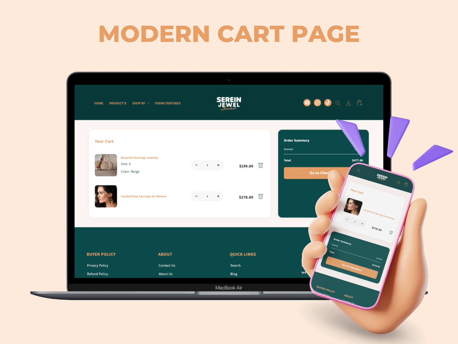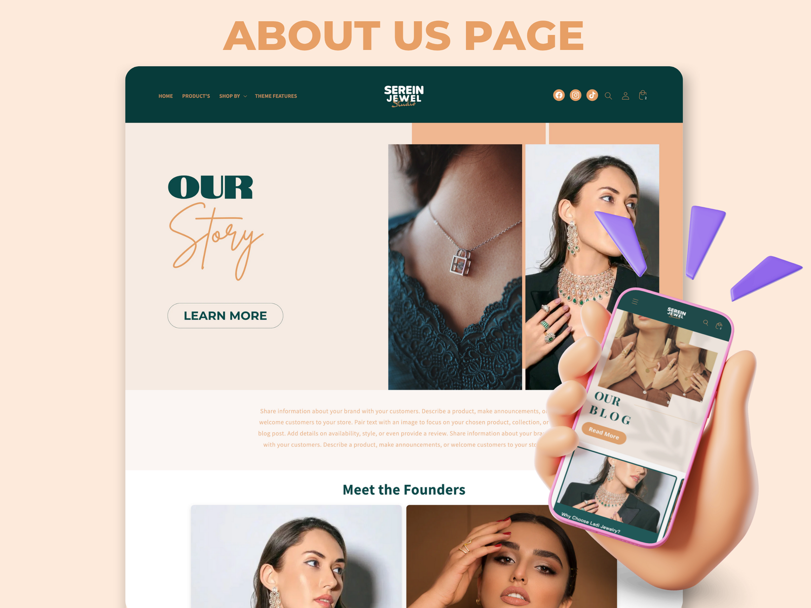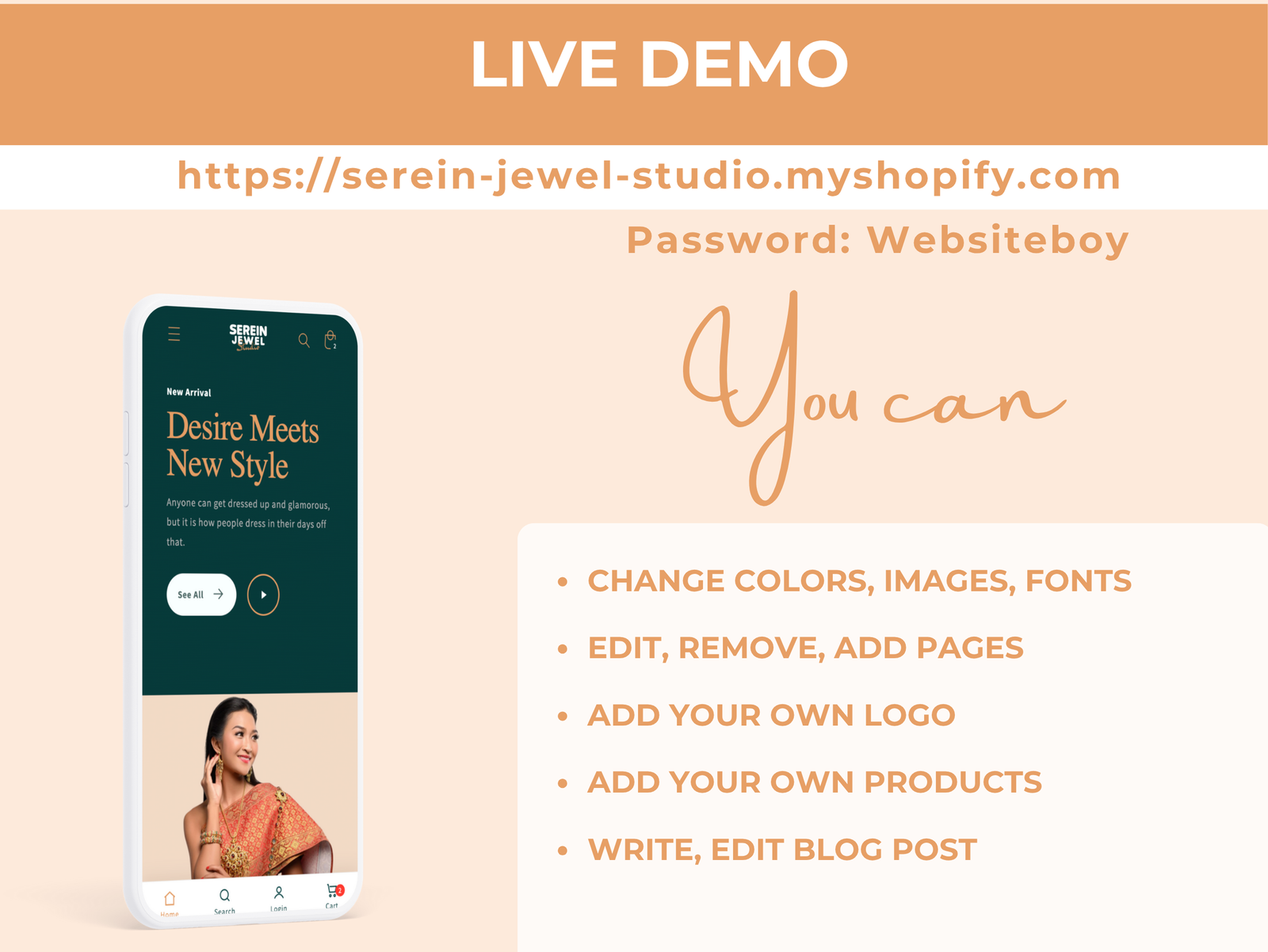 Launch your jewelry store beautifully with the Serein Jewel Shopify Theme 2.0 + Canva Editable Templates Bundle.
